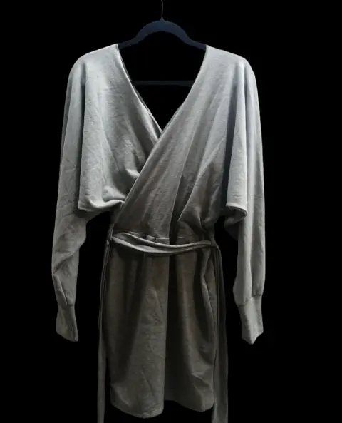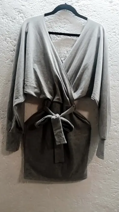Vestido color gris en escote v, casual muy cómodo y elegante.