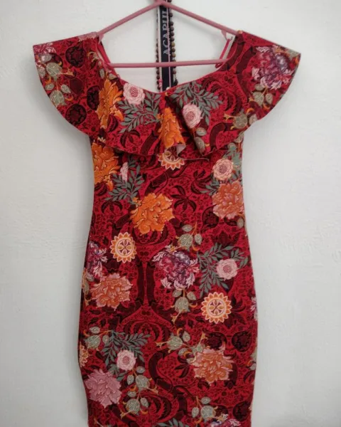 Vestido GUESS. Se uso una vez, estira y queda ajustado. Es escotado de los hombro y se ve muy bonito. La tela es suave y las colores muy padres.