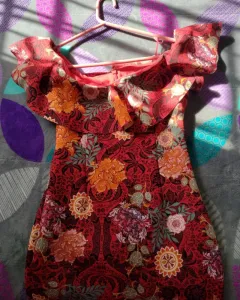 Se uso una vez, estira y queda ajustado. Es escotado de los hombro y se ve muy bonito. La tela es suave y las colores muy padres.