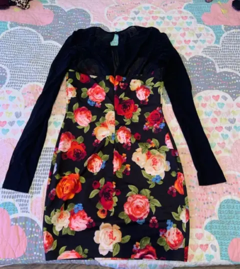 En excelentes condicionesSólo se usó una vezTalla chicaDetalles floralesManga larga negro trasparente