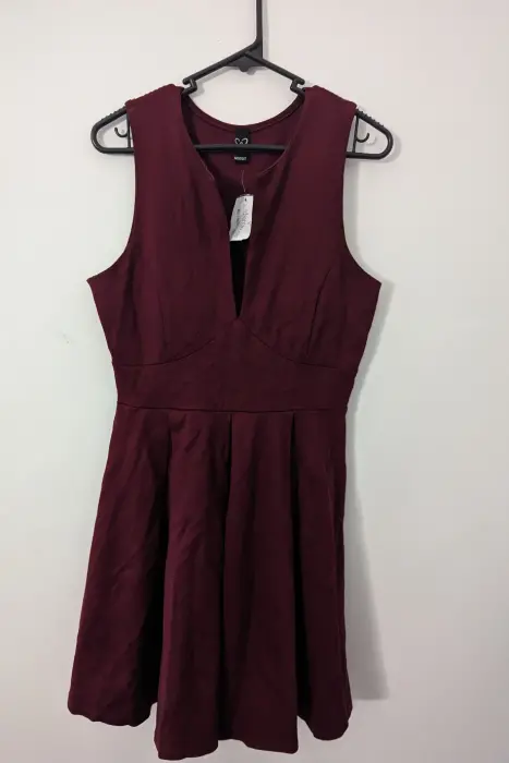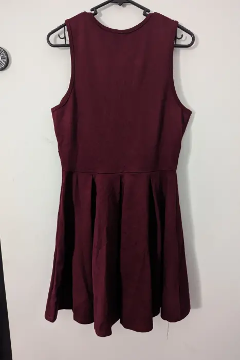 Vestido Guinda. Vestido con escote en V y un poco de vuelo en la parte inferior, casual para citas o salir a divertirse con los amigos.