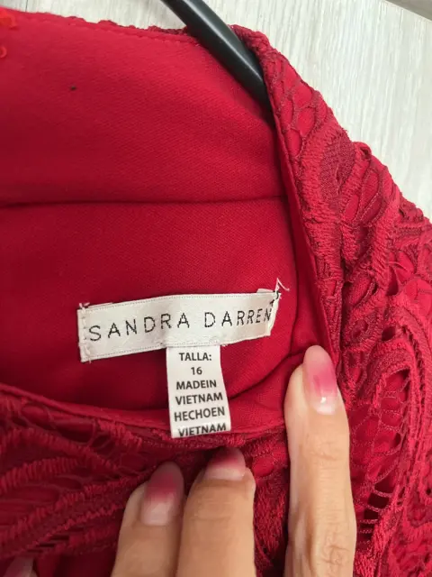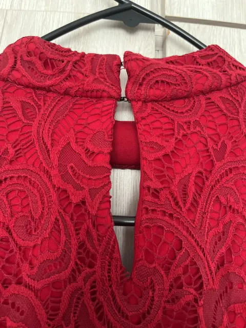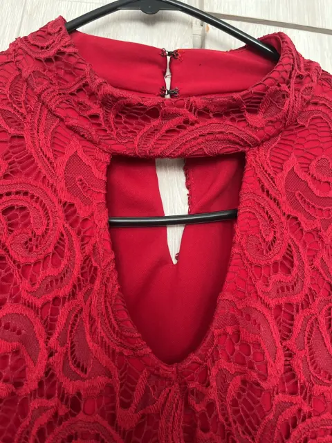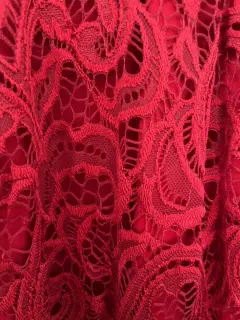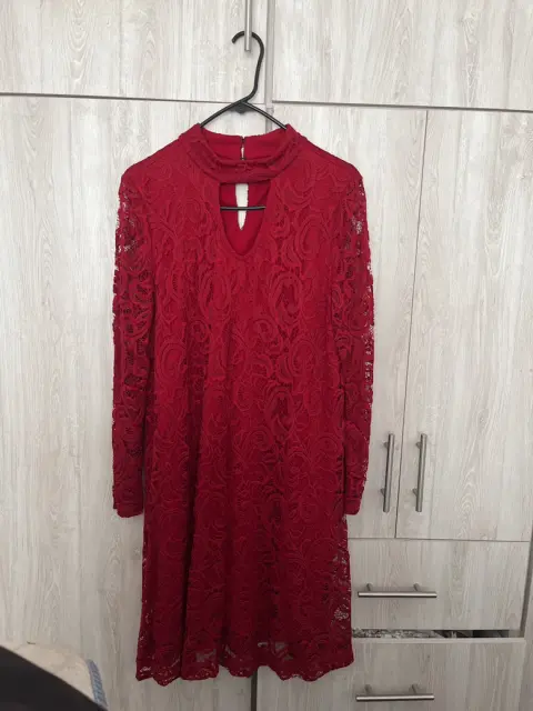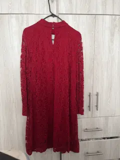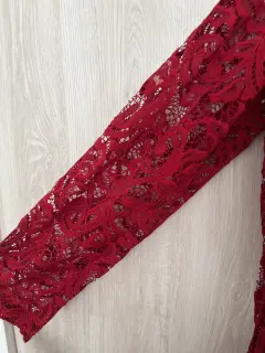 Vestido guindo tipo cóctel, talla 16, se usó una vez, manga larga, es de encaje, cuello tipo halter
