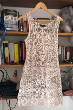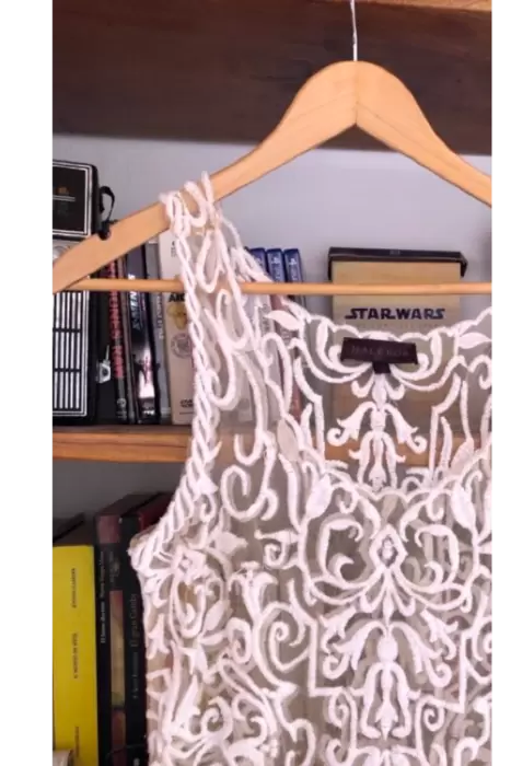 Lindo vestido , es transparente y ajusta súper lindo , esta bordado y es súper cómodo. Mide 90 largo 41 pecho