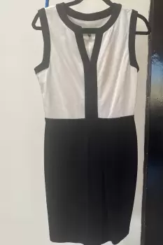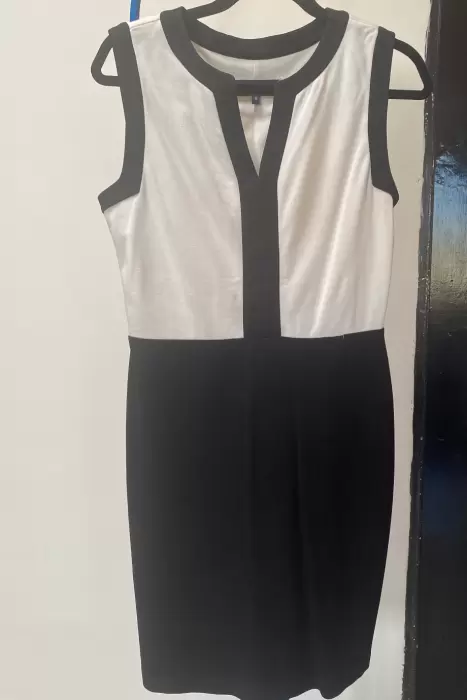 Vestido Hermoso de coctel. Vestido recto con bloques de color, el único detalle que tiene es que tiene unas costuras un poco flojas (anexo foto), la forma del vestido crea un efecto visual muy bonito al cuerpo. 61% Lyocell33% Poliamida 6% Elastano