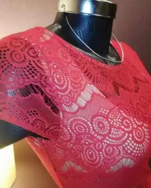Marca : BEBETalla : XSColor : RojoTextura de la tela : EncajeForro : color beigeLargo total: 85 cms.Ancho de axila a axila : 42 cms.( sin estirar)Ancho cadera : 43 cms.Composición de la tela : ExpandexSe entrega sanitizadoNO INCLUYE ZAPATILLAS