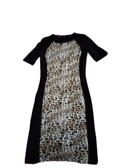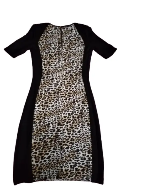 Vestido entubado animal print con bordes negros que hace una super silueta, queda abajo de la rodilla, la tela es gruesa ajusta muy bien