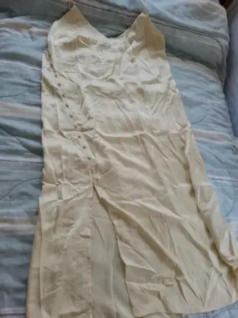 Vestido lancero satinado ultraligero y largo. Vestido nuevo H&M talla L. Lancemos corte recto de tela ultraligera y suave. Es largo, con abertura lateral y adorno de botones, no estira la tela, el pecho mide 100cm. El largo total del vestido es 115cm