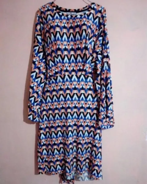 Promoción paga una prenda de $200 y llevate la segunda gratis. Vestido de poliester, cuello redondo, con cinta para ajustar en la cintura, se uso 2 veces en perfecto estado, el modelo es para quedar flojito, pero aun asi viene muy amplio por lo que aunque viene marcado como talla L , lo recomiendo para alguien talla XL.