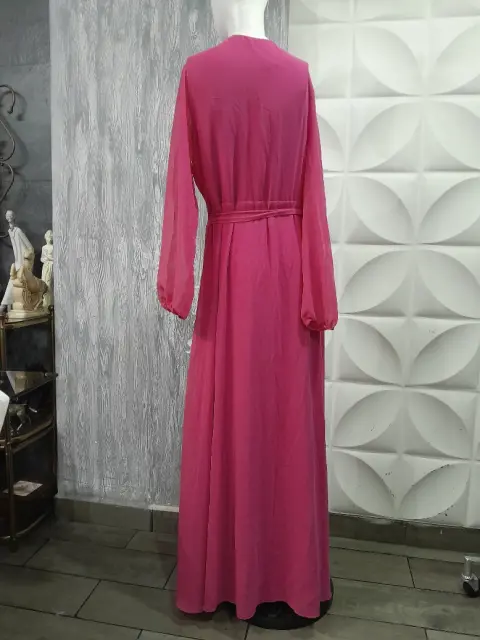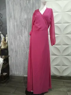 Hermoso vestido largo para fiesta de manga larga es cruzado se amarra de lado