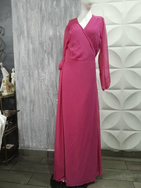 Vestido largo. Hermoso vestido largo para fiesta de manga larga es cruzado se amarra de lado