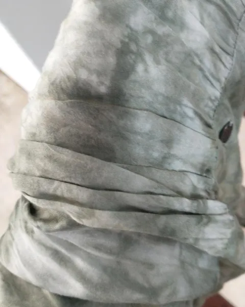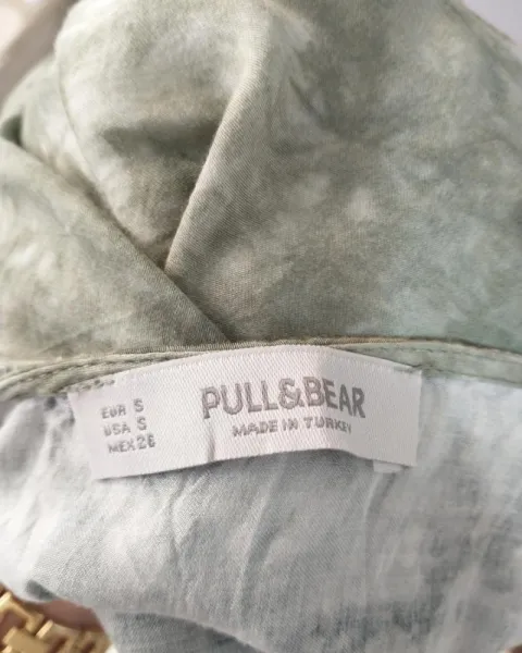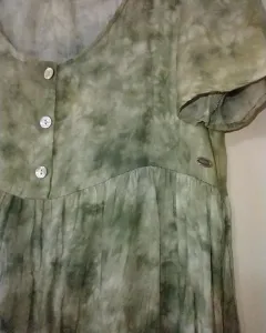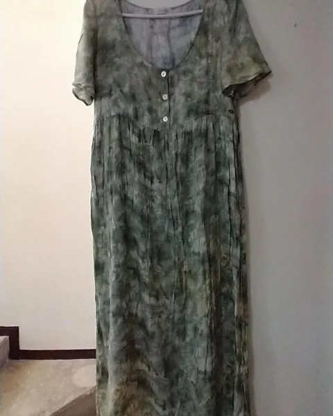 Vestido largo de manga corta con botones al frente. Color verde con blanco. Talla S. Usado una vez.