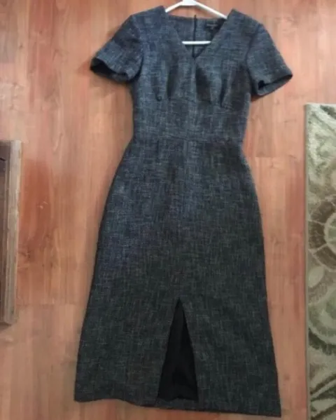 Vestido midi Con cuello V Manga corta Tela tweed Abierta en medio (No hago cambios ni devoluciones)