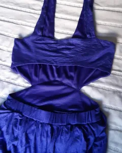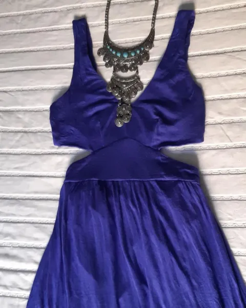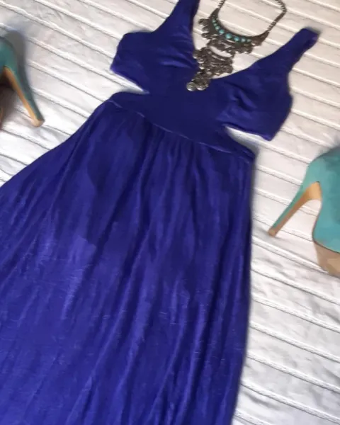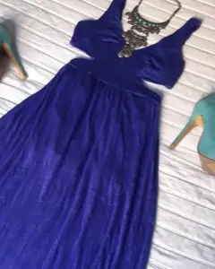 Vestido casual largo con escote en la espalda, color azul . Talla S .