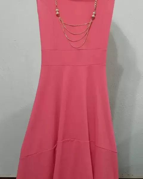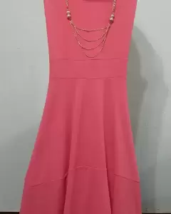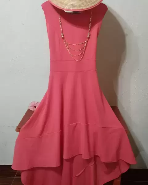 Hermoso vestido en color coral, talla L pero queda también a una M, se ajusta a tu figura y está ligero y elegante, sin ningún detalle, está nuevo