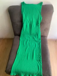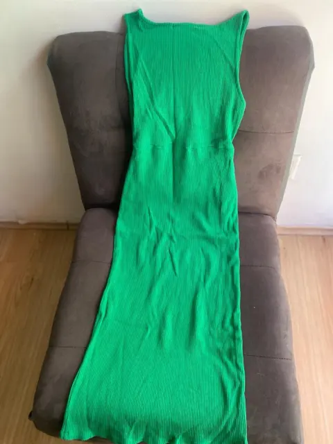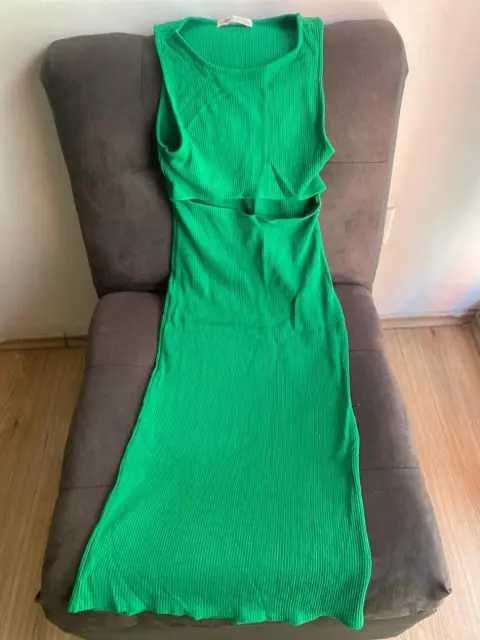 Vestido largo 💚 verde, talla M, amoldable, marca Pull &Bear , en muy bien estado, con abertura al frente