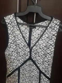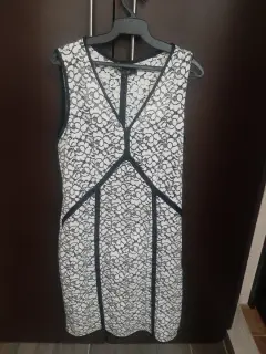 Talla #4. Marca Julio. Vestido largo blanco con fondo negro, lo que lo hacer ver muy elegante. Hace muy bonita figura. En excelente estado