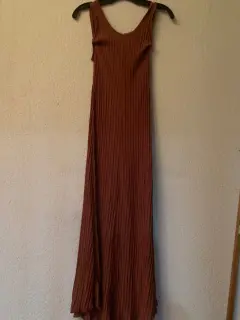 Vestido largo cafe. Vestido largo de punto, color café , sin mangas, no tiene forro , marca Zara , talla 26