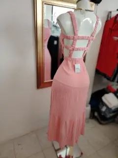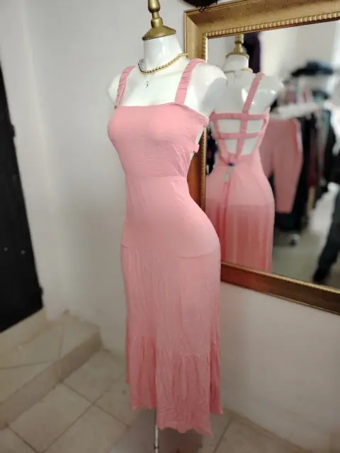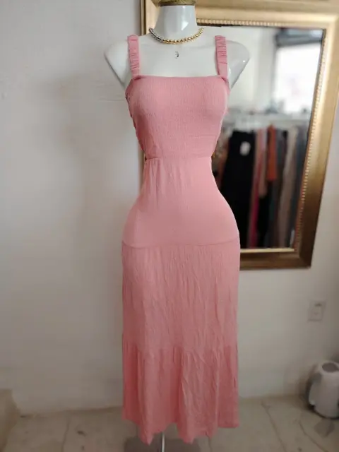 Vestido largo color Rosa para la fiesta Abierto de la espalda marca FOREVER 21 TALLA L