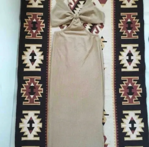Aquí tengo un Vestido largo con abertura en la cintura, tela stretch es color caqui no transparenta!! Talla S marca SHEINCintura: 62 a 75 cm pecho: 77 a 92 cmCadera: de 78 a 93 cm largo: 140