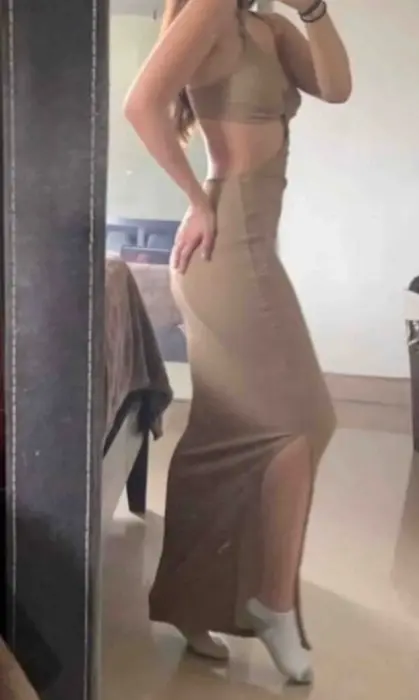 Vestido largo con abertura. Aquí tengo un Vestido largo con abertura en la cintura, tela stretch es color caqui no transparenta!! Talla S marca SHEINCintura: 62 a 75 cm pecho: 77 a 92 cmCadera: de 78 a 93 cm largo: 140