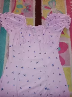 Vestido color rosa con florecitas azules, cuenta con resorte en los hombros y un cordon de adorno, el vestido se ajusta al cuerpo y tiene una abertura en la pierna, la tela no se transparenta par nada, es un vestido muy bonito, como y fresco ademas de que solo tienen una puesta de unas cuantas horas, en las fotos muestro como se ve