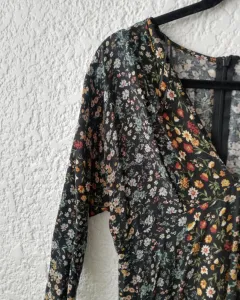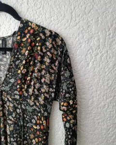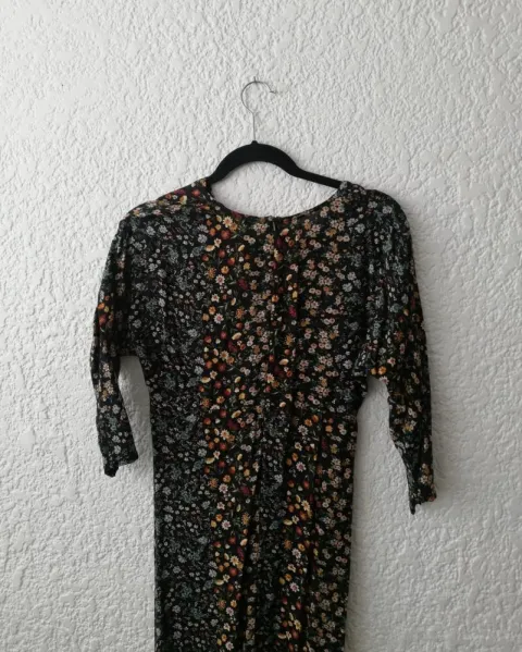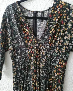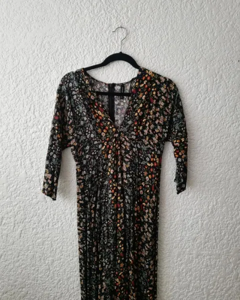 Vestido largo con estampado. Vestido largo, manga 3/4 Cierre en la parte de atrás, cuello en v.Tela viscosaTalla grande 30mxHombro a hombro: 41cmLargo: 112cm