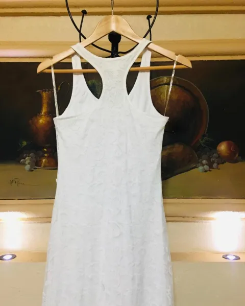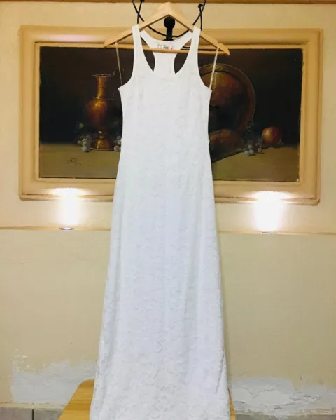 ♥️Está prenda es única, en la ultima foto te muestro un ejemplo de cómo queda, y el vestido es con doble tela por dentro el forro blanco y por fuera la tela de encaje.📏medidas: axila-axila 38cm, cintura 67cm, largo desde el hombro 136cm.🤑Si es tu primera compra utiliza mi código: ✨ maryicm21apKif ✨ te regalo $100 en tu primera compra (aplica solo para compras con valor de $1,000 o más)