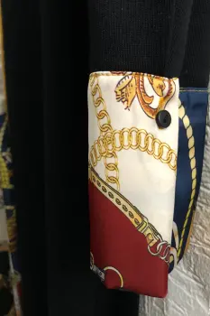 VESTIDO NEGRO CON VIVOSVestido negro recto, puños en tela de cadenas. Simula de mascada al frenteCuello redondo. preciosoTipo de tela tejido cerrado, estira la telaMEDIDASLargo 1.25cmhombro 39-40cmpecho 98cm
