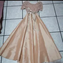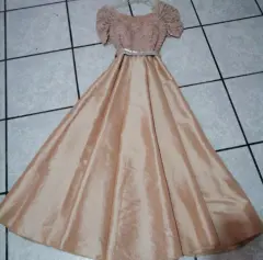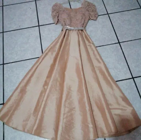 Vestido largo de fiesta con brillos y lazo en cintura, en buen estado, nuevo y sin etiqueta.