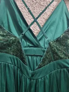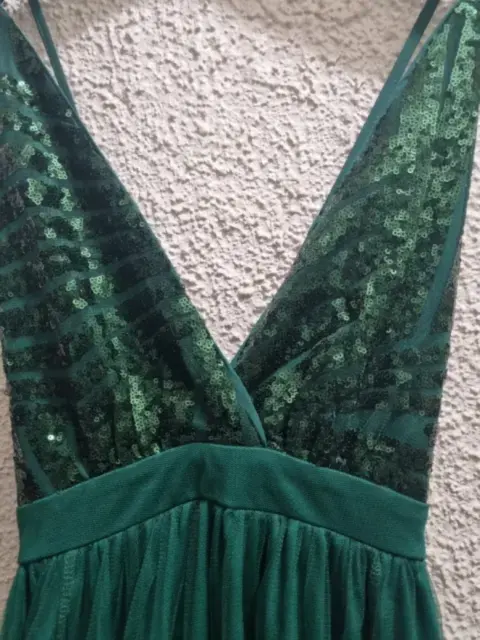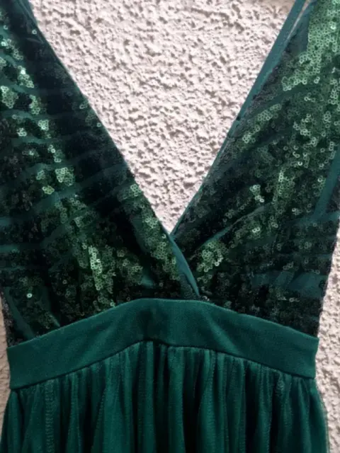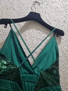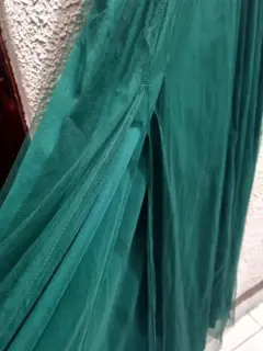 Vestido 👗 largo de fiesta verde.. Vestido 👗 largo de fiesta con lentejuelas en la parte superior y la falda de tul con abertura de un costado sin detalles.