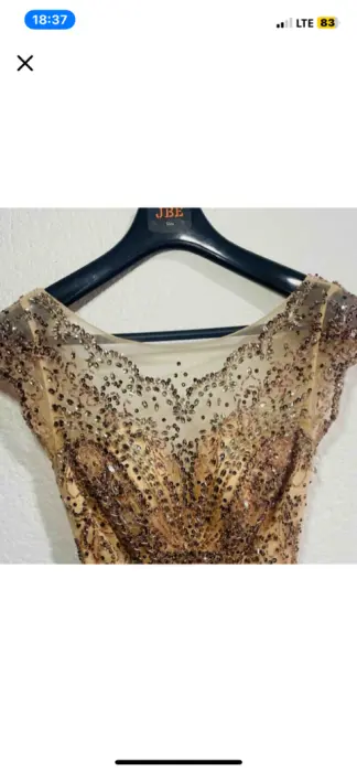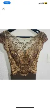 Vestido ideal para graduación con detalles de pedrería en el escote, cuento con la chalina y no tiene ningún detalle