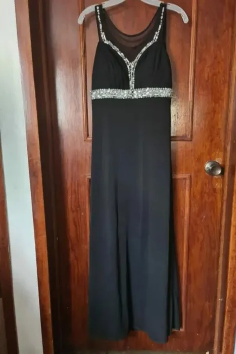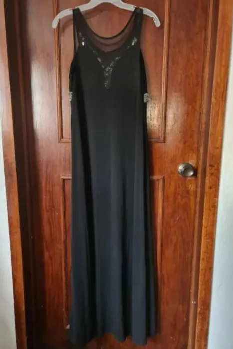 Vestido de fiesta de noche, espalda con transparencia y piedras al frente.Pecho 44 cmLargo 140 cm