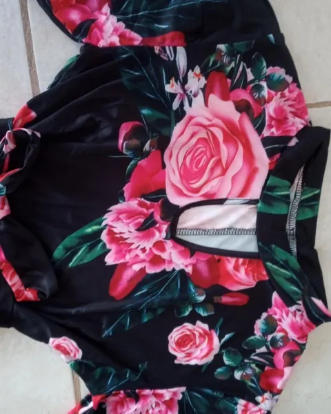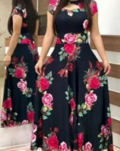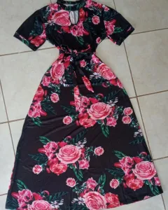 Vestido largo estampado. Tela spandex con elastano y poliéster, se amolda al cuerpo, talla M, nuevo.