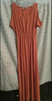 Vestido largo liso. En perfecto estado muy cómodo escotado con cierre corte recto con resorte enmedio