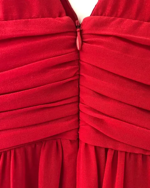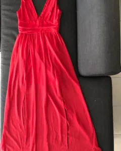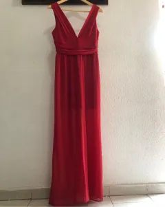 Vestido largo LOB rojo. Bellísimo vestido largo LOB con forro corto para lucir las piernas en cada paso. Tiene doble abertura y ajusta perfecto a la cintura. Escote en V