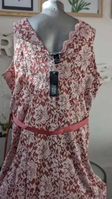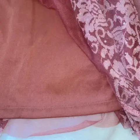 Es un vestido formal realmente bonito. Encaje rosa con malla rosa debajo y Forro elásticoTalla 3x