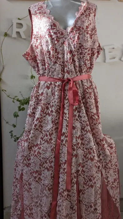Vestido largo lovely grace. Es un vestido formal realmente bonito. Encaje rosa con malla rosa debajo y Forro elásticoTalla 3x