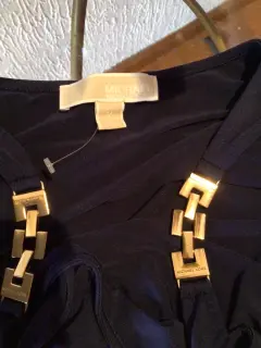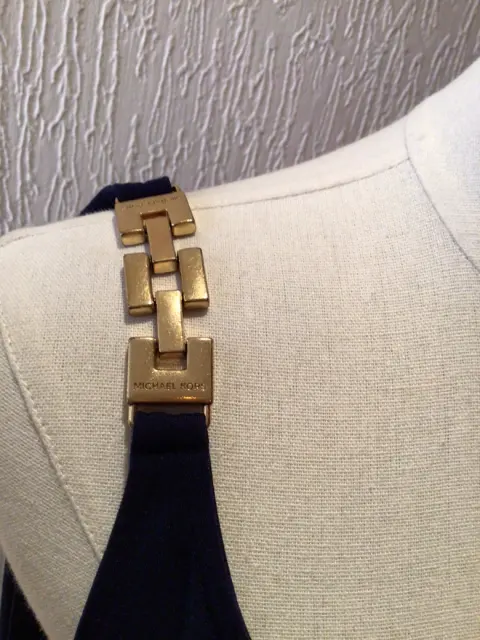 BONITO VESTIDO MARCA MICHEL KORS PARA PLAYA, FIESTA COLOR AZUL MARINO CON TIRANTES CON LOGOTIPO, PEQUEÑOS DETALLES EN LOS TIRANTES ESPECTACULAR