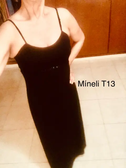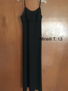 Vestido largo Minelli. Vestido largo negro sencillo y con toques bordados de canutillo y tirantes delgados