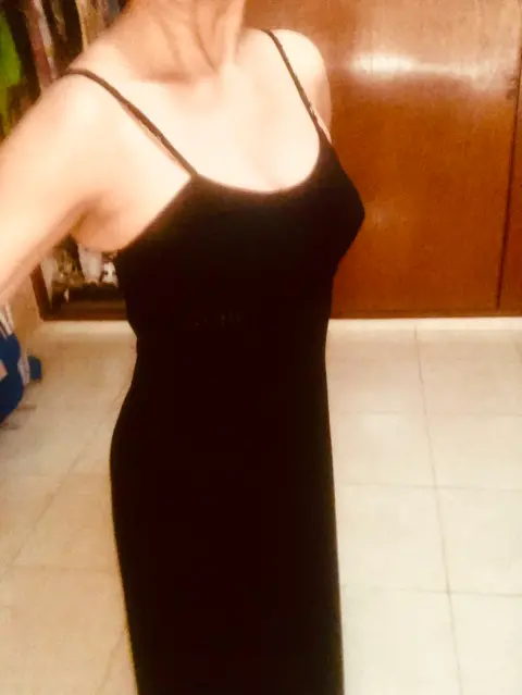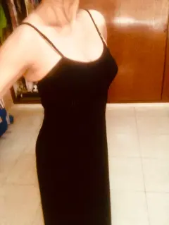 Vestido largo negro sencillo y con toques bordados de canutillo y tirantes delgados