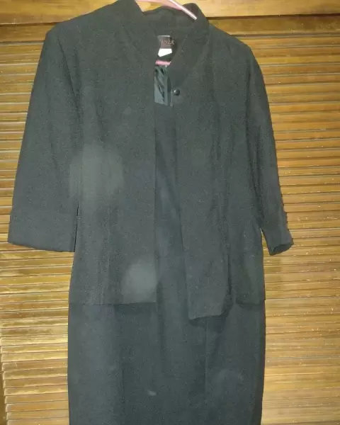 Vestido largo negro con saco, es tela tipo poliéster.El vestido es sin mangas.Talla 13Se encuentra en excelente estad