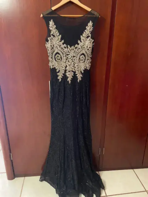 Vestido largo negro en lentejuelas. Vestido largo negro con dorado totalmente en lentejuelas Irma Perfecto con el vestido