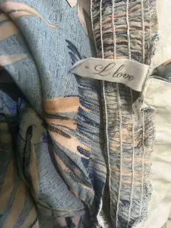 Lindo vestido talla chico, con fondo interior color celeste a la altura de la rodilla, se anuda de los hombros para ajustarlo.