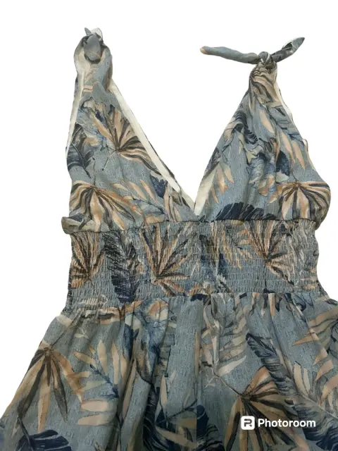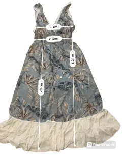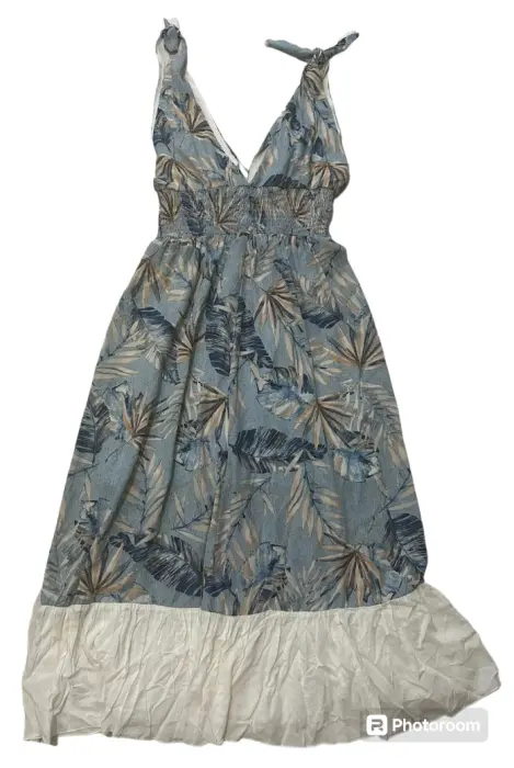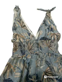 Vestido largo playero. Lindo vestido talla chico, con fondo interior color celeste a la altura de la rodilla, se anuda de los hombros para ajustarlo.