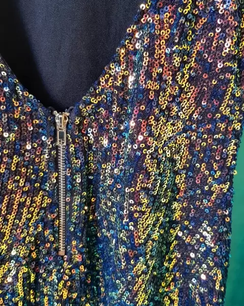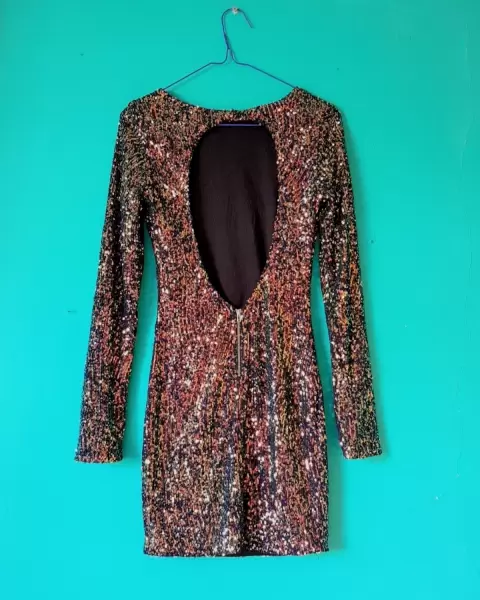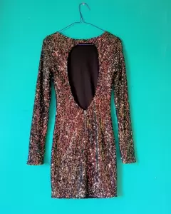 Vestido lentejuelas. Está increíble, escote en espalday cierre trasero.