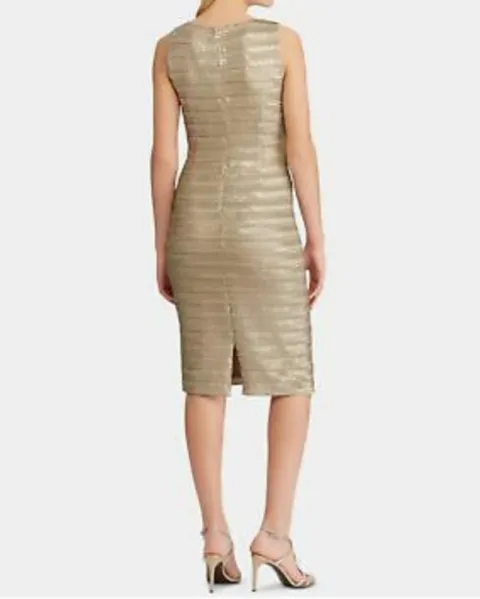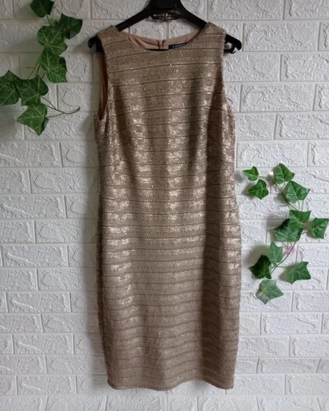 Vestido lentejuelas dorado Ralph Lauren. ♥️Envios lunes miércoles y viernes ♥️Quedó al pendiente para resolver cualquier duda. ♥️Si me has comprado anteriormente avísame para enviarte regalito extra.