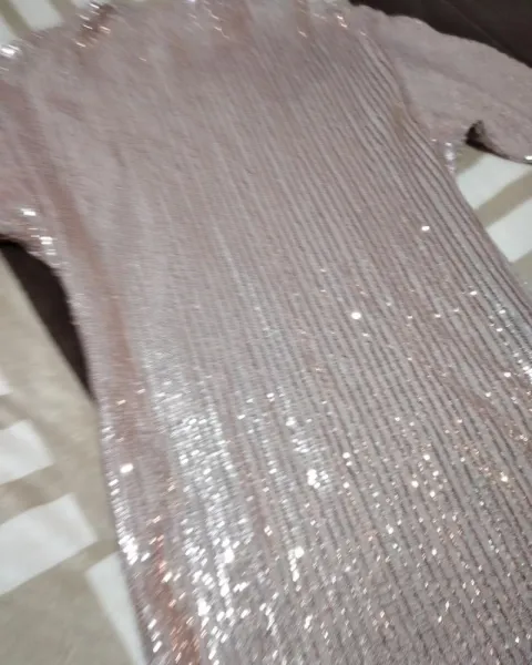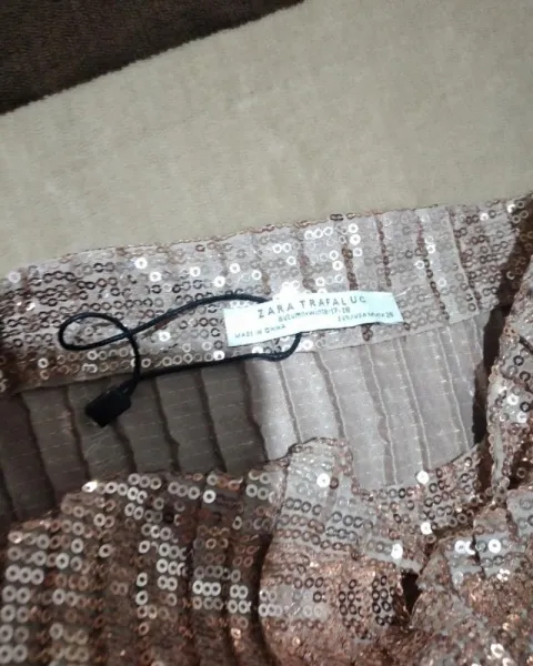 Hermoso vestido Zara. Lentejuelas. Es entre rosa/dorado. Muy padre en color. Llega arriba de la rodilla. Sin detalles.