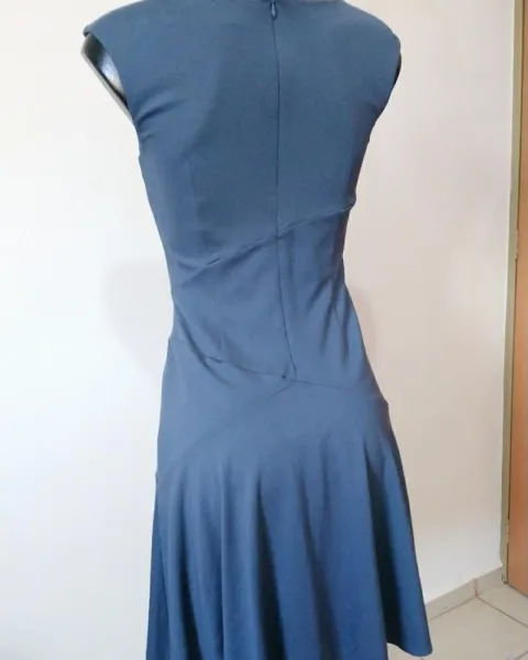 Bonito vestido azul grisáceo strech estira bastante, corte favorecedor para cintura, marcado con talla 2 viene amplio, axila a axila 40, cintura 36, largo 90cm