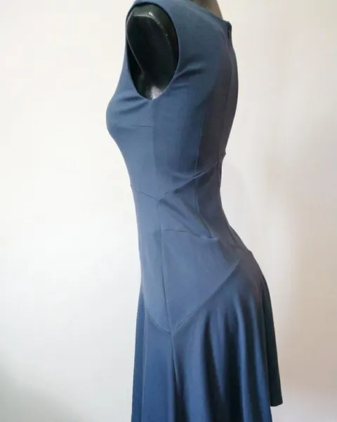 Vestido licra gruesa de Loft. Bonito vestido azul grisáceo strech estira bastante, corte favorecedor para cintura, marcado con talla 2 viene amplio, axila a axila 40, cintura 36, largo 90cm