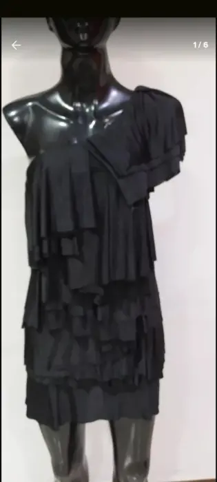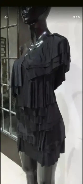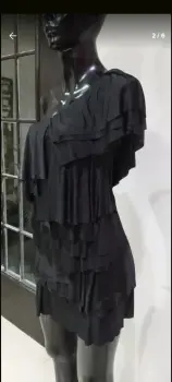 Vestido licra negro con olanes talla xs. Gracias por vicitar nuestra tienda en líneaEn esta ocasión te traemos: minivestido TALLA: xsMARCA: BCBGMAXAZRIACOLOR: NegroSTRECH:siMADE IN :chinaMATERIAL: licraMEDIDASHOMBRO:AXILA: 35 cm CINTURA: 36 cm CADERA: 48 cm LARGO: 82 cm desde el hombroLas medidas son de lado a lado